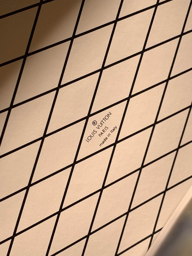 Inside Monogram flat clutch with zip closure attached with a gold-color chain