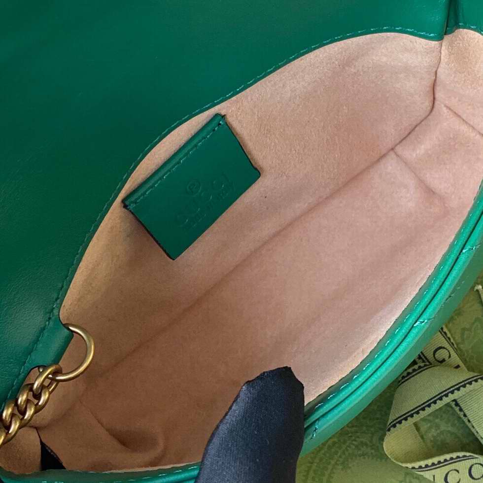 The GG Marmont mini bag has a key ring that can be used to attach it to a separate larger bag. It has a softly structured shape and a flap closure with Double G hardware. The hardware is inspired by an archival design from the '70s. Made in matelasse chevron leather.