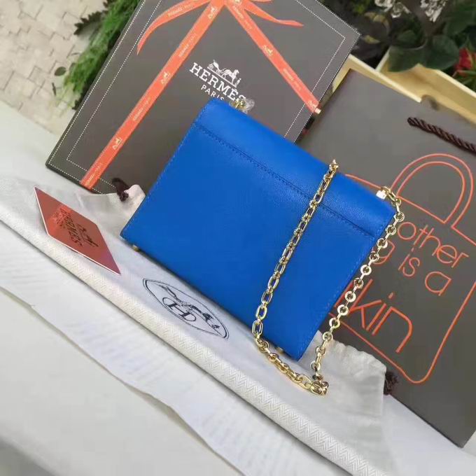 Hermes >> Hermes mini Chevre verrou shoulder Bag in blue with gold metal or silver metal