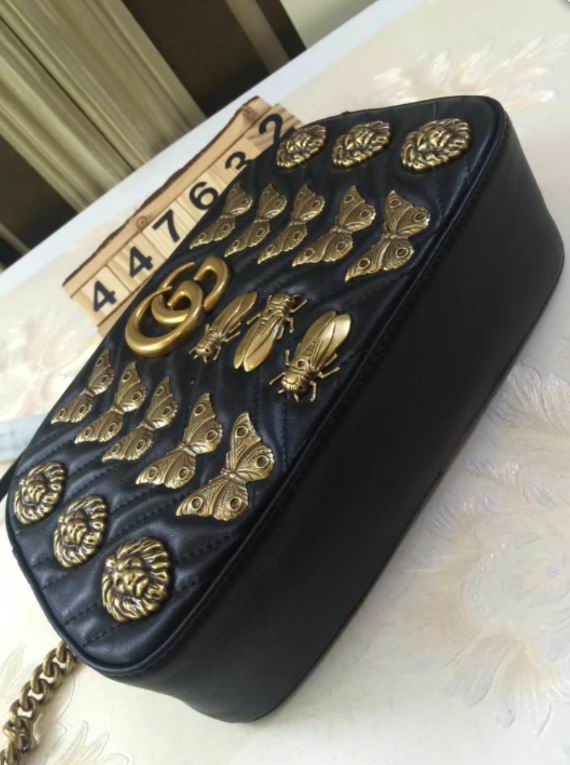 >> Gucci GG Marmont animal studs shoulder bag black leather