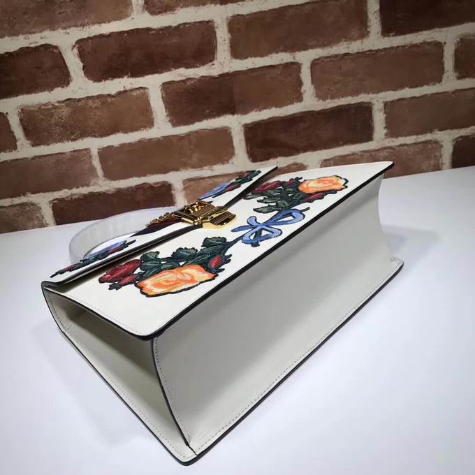 Gucci >> Gucci Sylvie embroidered leather top handle bag white leather