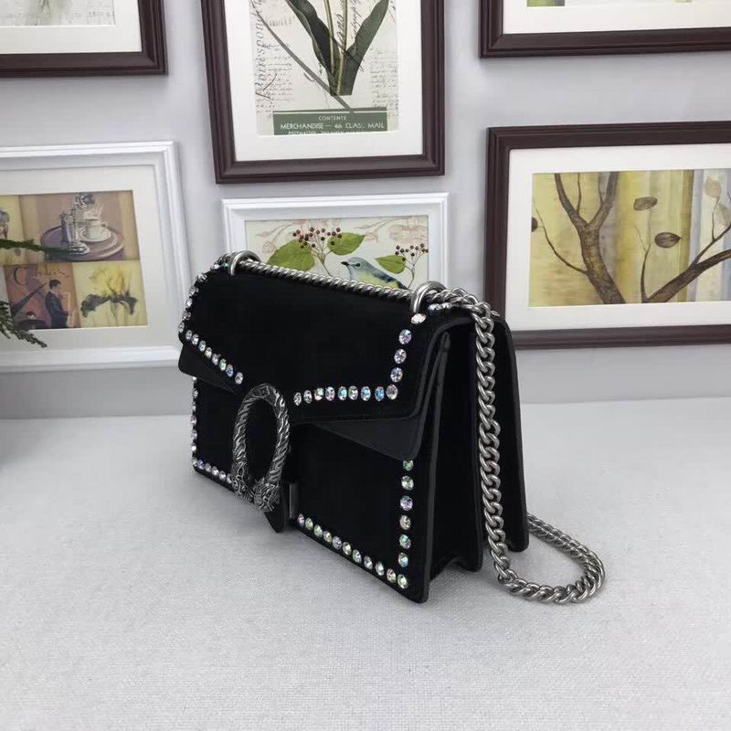 >> Gucci Black Nubuck Leather shoulder bag with crystals
