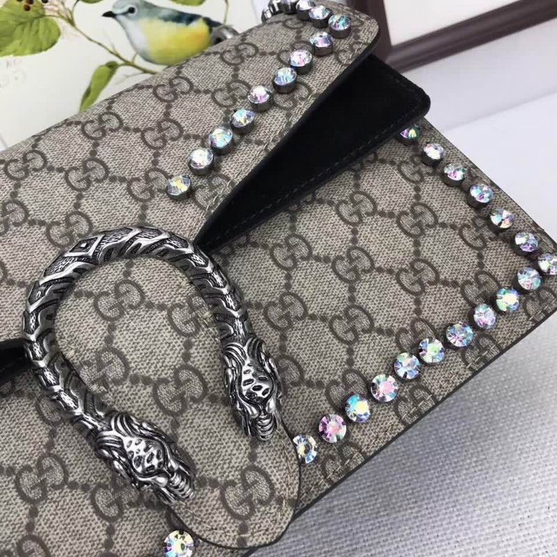 Gucci >> Gucci Dionysus GG Supreme shoulder bag with crystals black