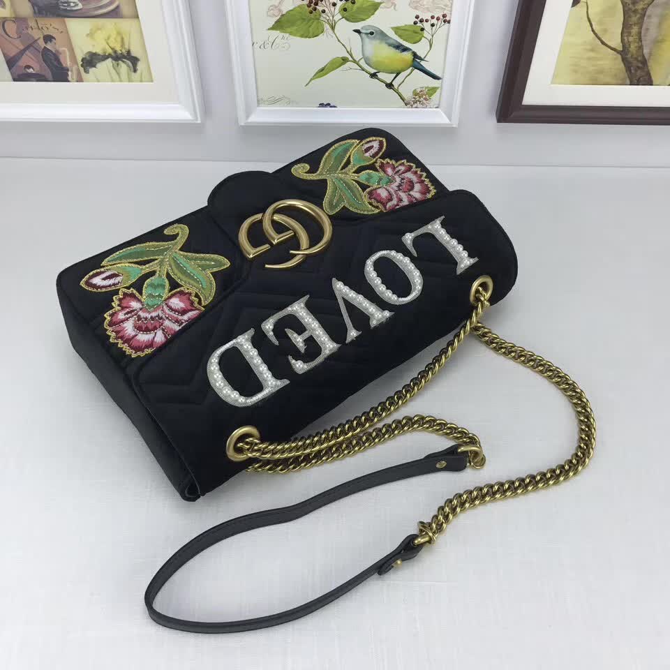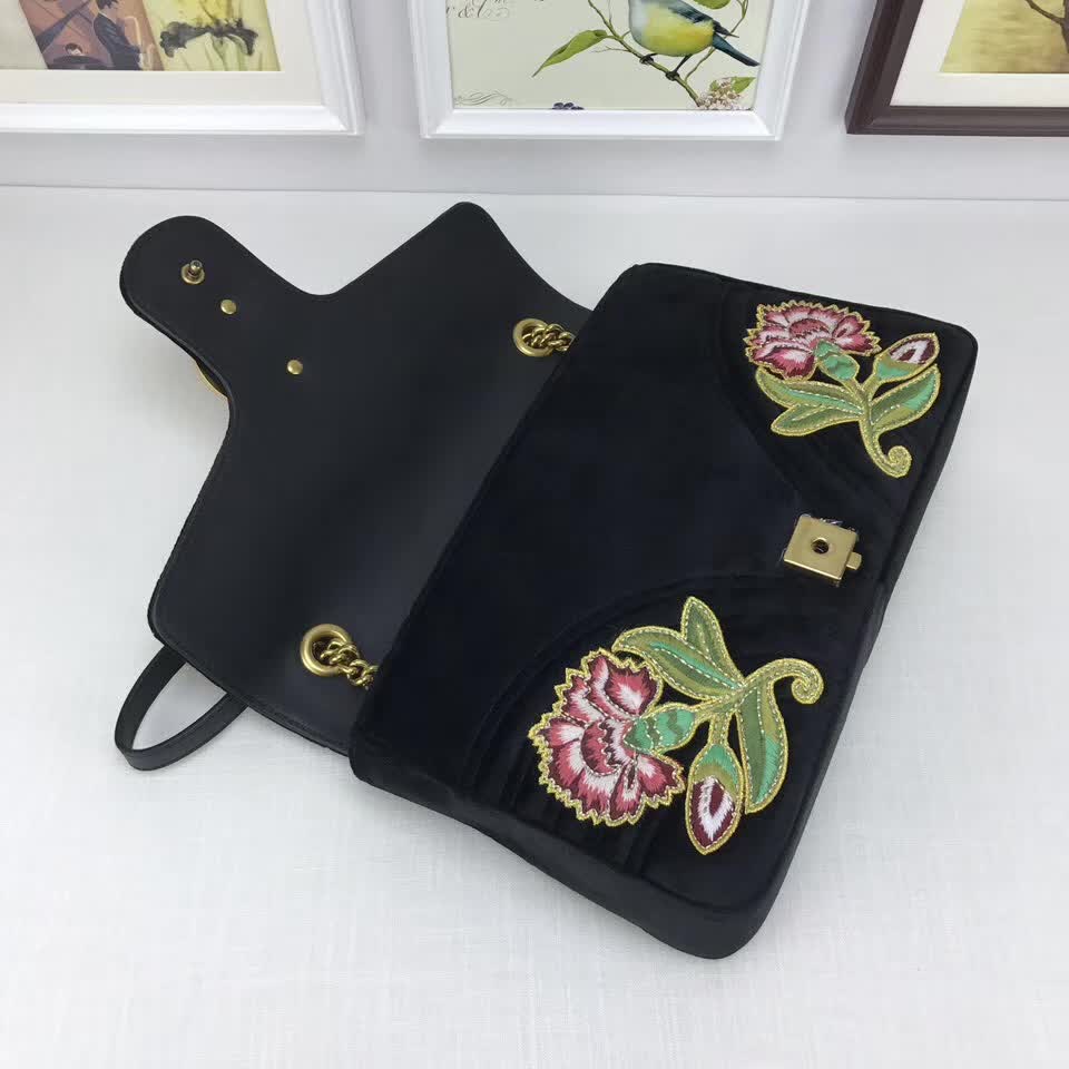Gucci >> Gucci GG Marmont embroidered velvet bag black chevron velvet