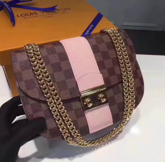 >> Louis Vuitton Coated Damier Ebene canvas and Cuir Taurillon leather exterior Wight bag��Magnolia