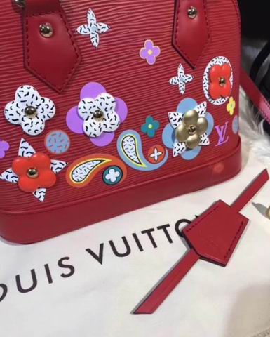 Louis Vuitton Printed and embossed Epi leather with leather red ALMA BB